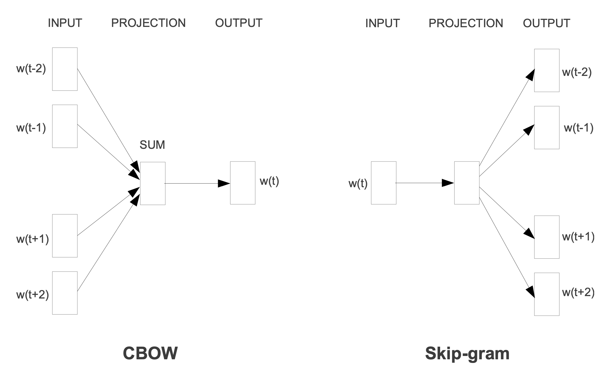 처리 성능 개선과 느린 학습 속도의 개선을 위해 Word2Vec에서는 CBOW와 Skip-gram을 제시합니다.