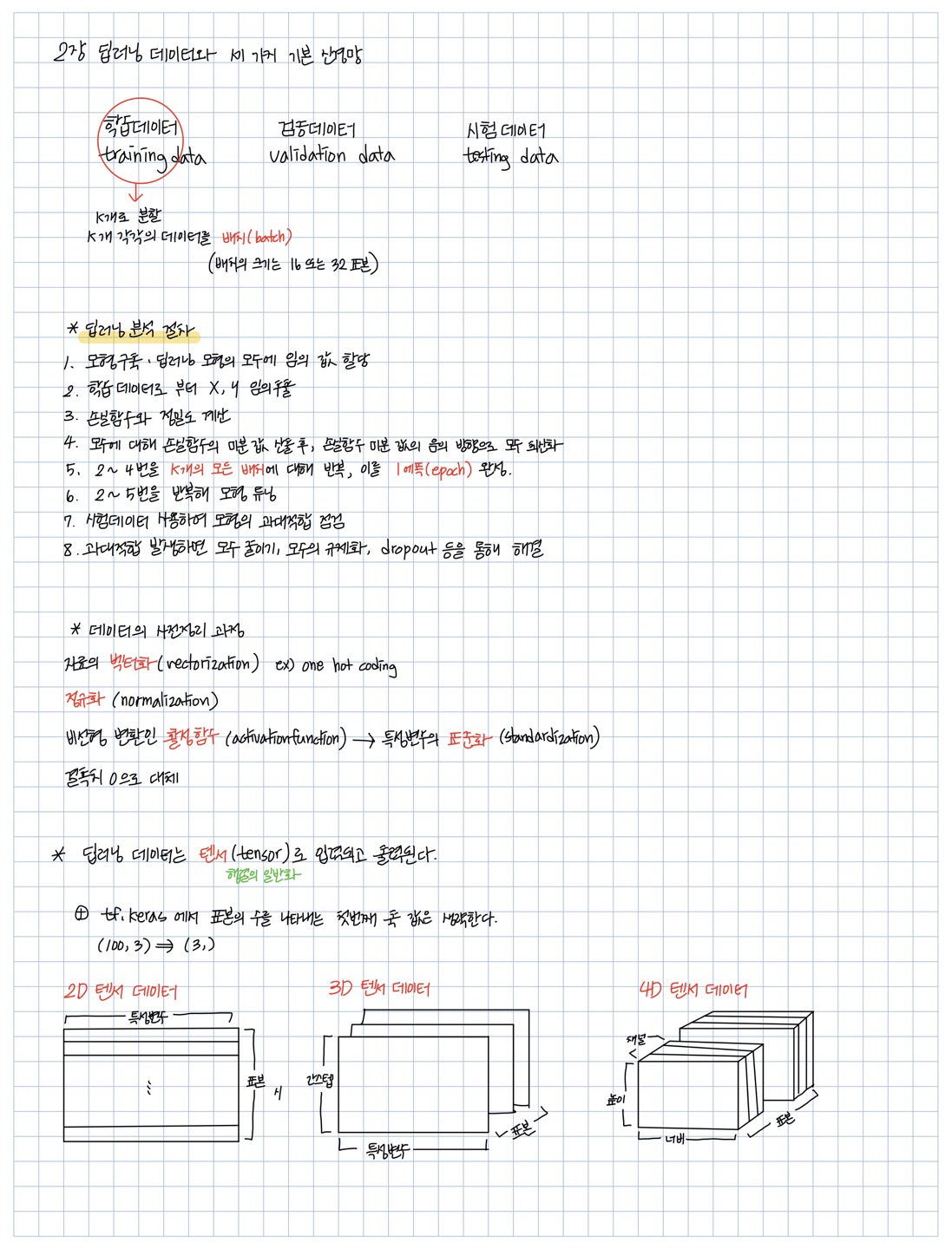 텐서플로 케라스를 이용한 딥러닝(박유성)을 기반으로 딥러닝의 데이터와 세 가지 기본 신경망 MLP, CNN, RNN을 정리했습니다.