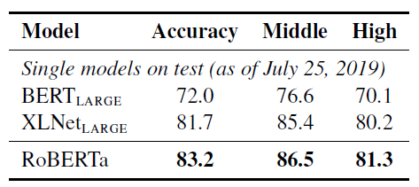중학교, 고등학교 셋 모두에서 RoBERTa가 SOTA를 달성했습니다.